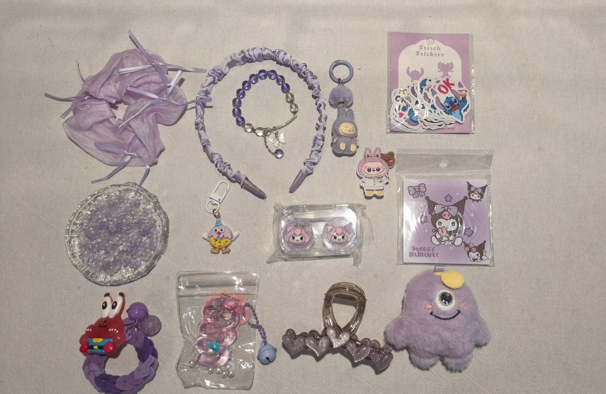 there are contains 10 item-such as: labubu charm,cute sticker,bead...and more!